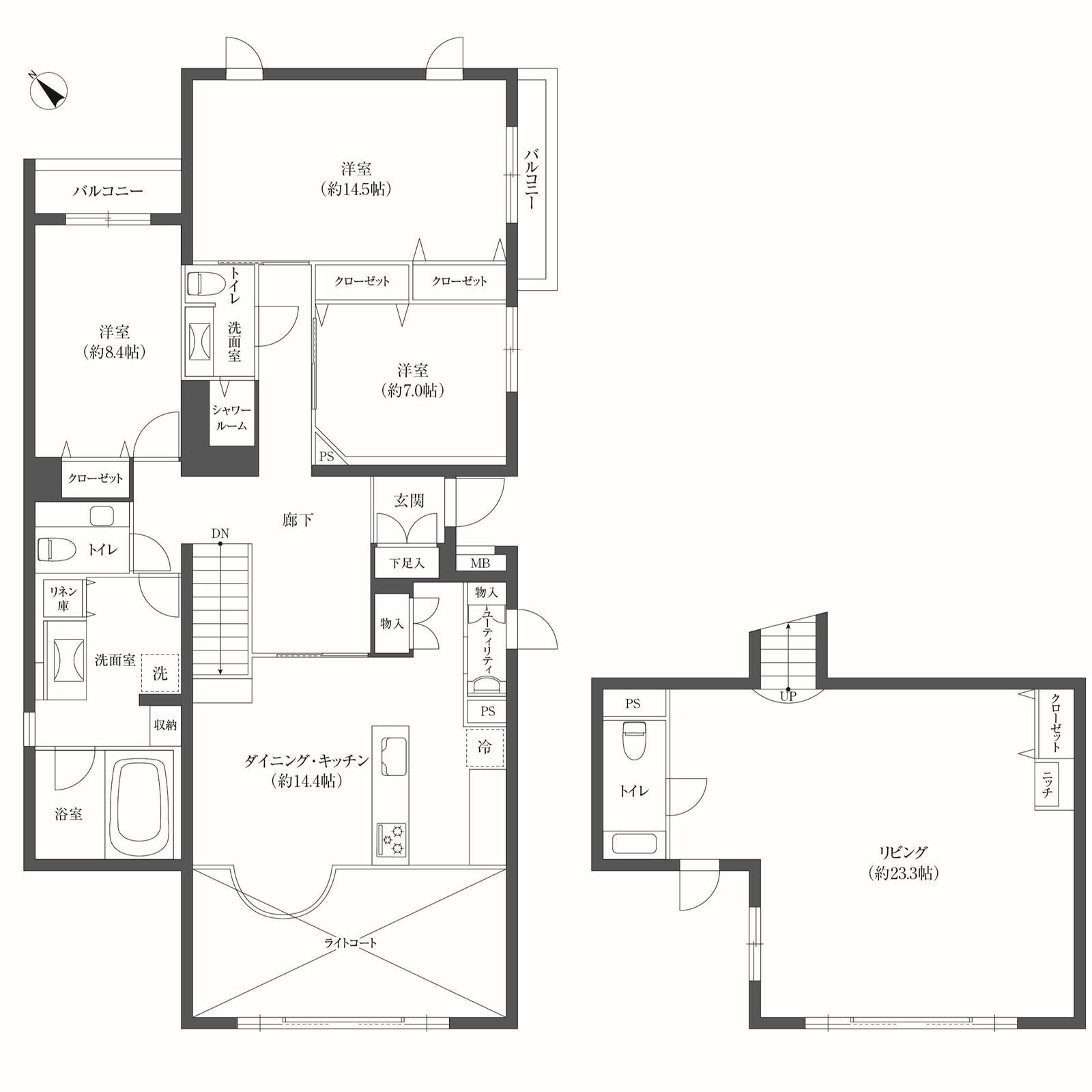- バルコニー6.4㎡・専用庭46.85㎡