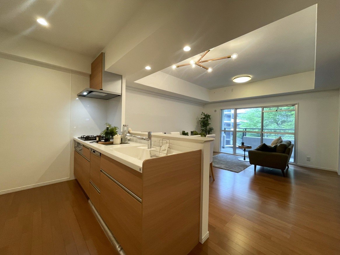システムキッチン交換(食洗機付)/UB・トイレ・洗面化粧台交換/全室天井・壁クロス張替/全室フローリング張替