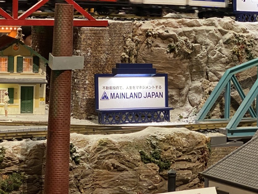 ロゴ入り看板、貨車を設置しています。