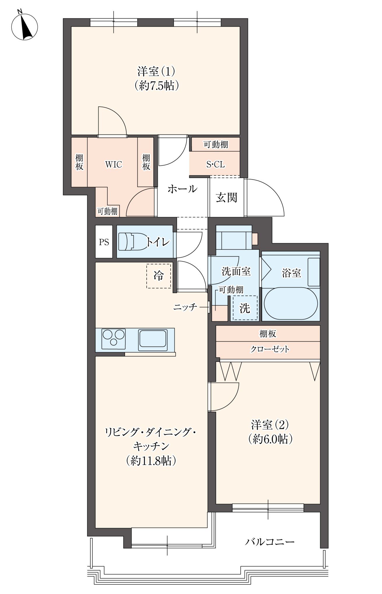 間取り: 2LDK(専有面積 63.68㎡・バルコニー 9.23㎡)